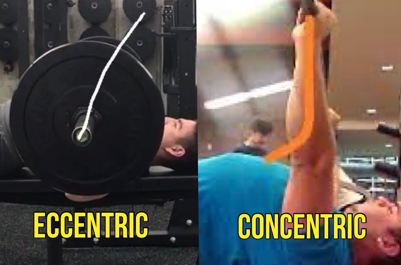 When benching the bar should be lowered from lockout to a high point of your arch, the exact position of this changes in different individuals. The bar path for the eccentric phase of the lift is slightly rounded, this lets the weight fall almost naturally, so you won’t get too fatigued from just the eccentric phase. On the concentric phase of the lift the ideal bar path has a J shape, this is known as the J curve.