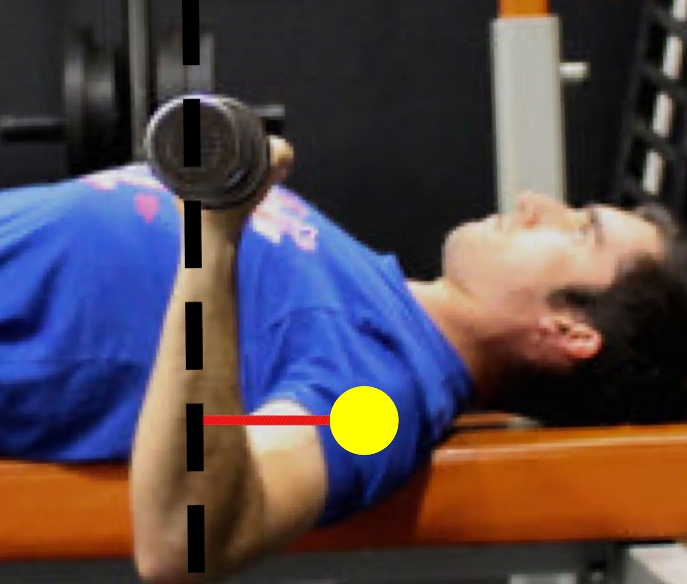 In the bench press, the load arm is from the fulcrum at the shoulder to the frontal plane which the barbell acts on. At lockout the barbell is directly over the shoulder joint, so there is no load arm, it makes sense to try and keep it this way by lowering the barbell directly down over the shoulder joint. But this will create a large ROM, and it will stretch the triceps and pectorals into a position where they can no longer perform a forceful contraction, this type of bench press also has the risk of causing inflammation and tears of the rotator cuff, as it becomes impinged during the lift.