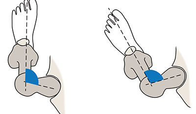 The shape of the pelvis affects how easy it is for a lifter to hit parallel during the squat. For example, if someone has retroversion of the hip, when the femoral head is angled further backward than normal at the pelvis, the femur will make contact with the acetabulum of the pelvis earlier. Another possible problem caused at the hip is in the depth of the hip socket and in the thickness of the femoral neck as if someone was to have a deep hip socket and thick femoral neck, then the femoral neck will likely hit the pelvis before a good amount of depth is allowed. Most people's issues with hitting depth are to do with the morphology of the hips rather than the flexibility of muscles and tendons, so take the time to adjust your form, as discussed earlier. Someone with more inward-facing hips may only be able to hit depth with a more narrow stance squat, whilst someone with more outward-facing hips may get more benefits from a wider stance squat.